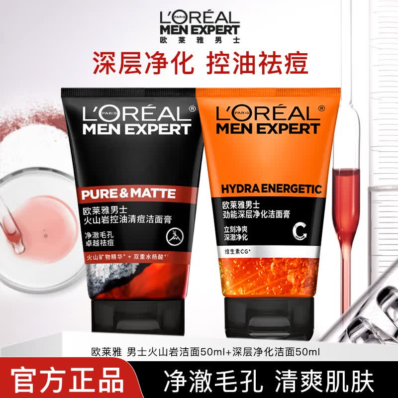 欧莱雅男士洗面奶补水保湿控油碳爽磨砂抗黑头深层净化氨基酸洁面膏乳 火山岩洁面+深层净化洁面
