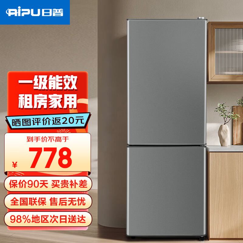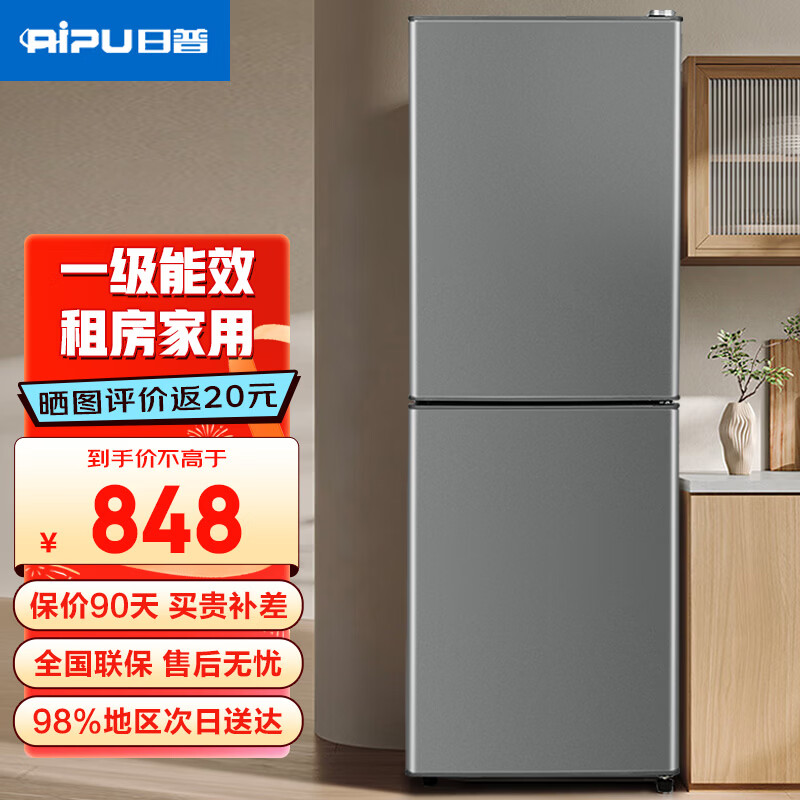 日普(RIPU)双门冰箱小型两门家用一级能效小冰箱迷你小型宿舍出租房办公室节能省电冷藏冷冻电冰箱 【一级能效】238升灰色【冷藏4层冷冻2层】