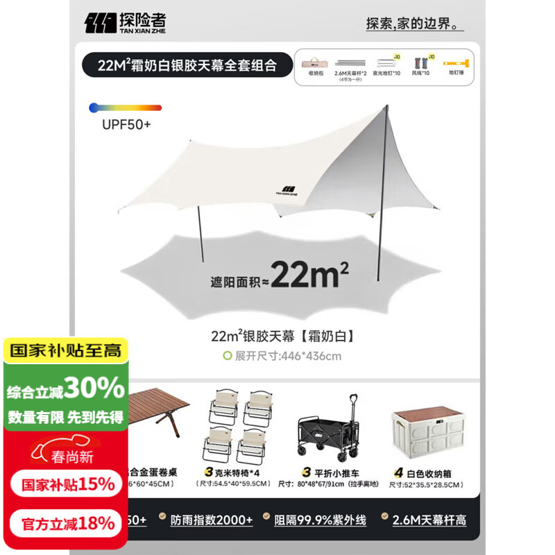 探险者(TAN XIAN ZHE)天幕帐篷露营天幕户外8-10人露营装备全套防晒蝶形防雨防风遮阳棚 【22㎡】银胶天幕全套组合