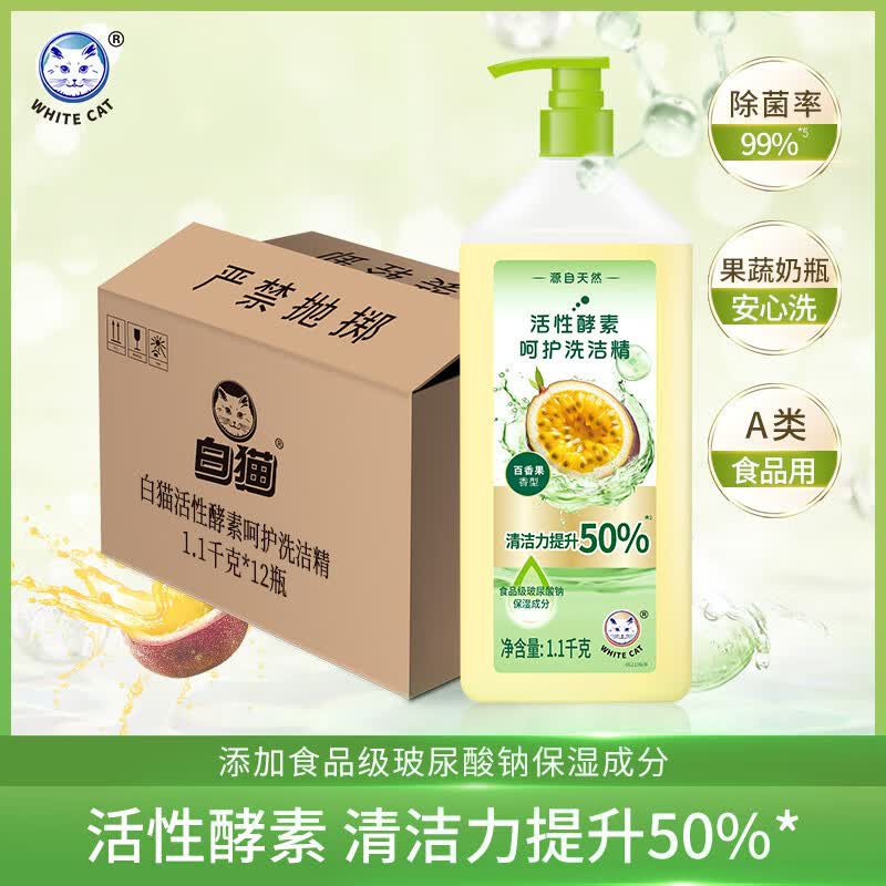 白猫活性酵素呵护洗洁精1.1kg 轻松去油 除腥去异味 【大容量 囤货装】12瓶26.4斤