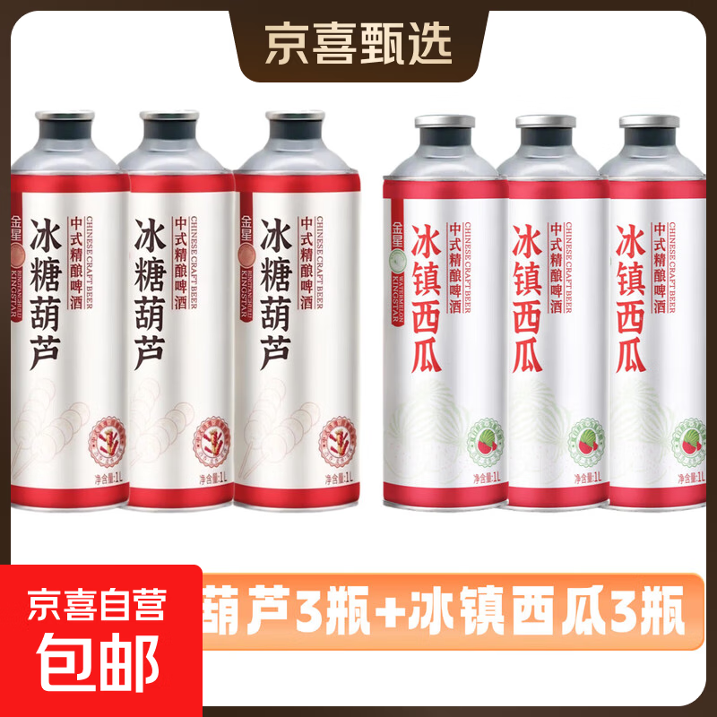 金星(KINGSTAR)冰镇西瓜冰糖葫芦柠檬海盐中式精酿啤酒果啤春节年货送礼 冰镇西瓜+冰糖葫芦 1L 6罐 组合装