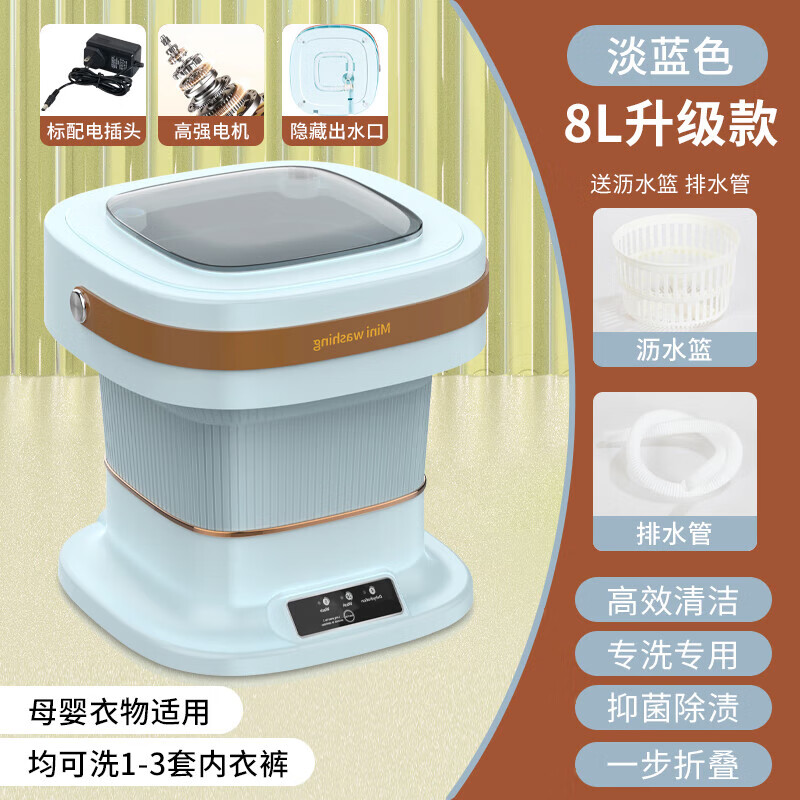扬子集团半全自动迷你洗衣机小型洗脱一体 内衣内裤洗衣机学生宿舍 婴儿洗袜子机带脱水租房半自动 折叠款8L蓝【蓝光+CLE深度清洁+低音净洗】