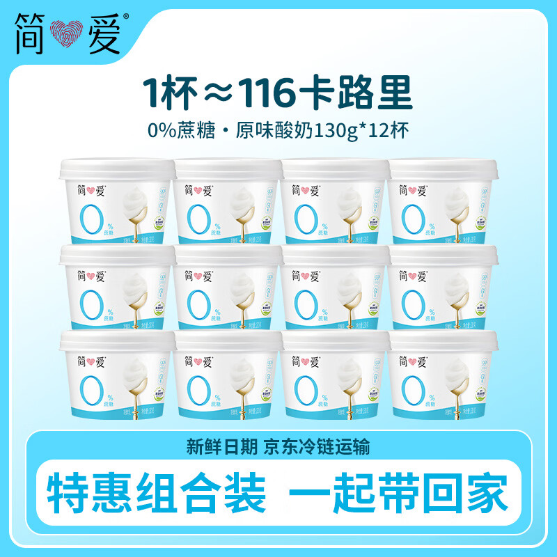 简爱无蔗糖酸奶 0蔗糖0代糖130g*12杯 天然乳蛋白【京东专供】