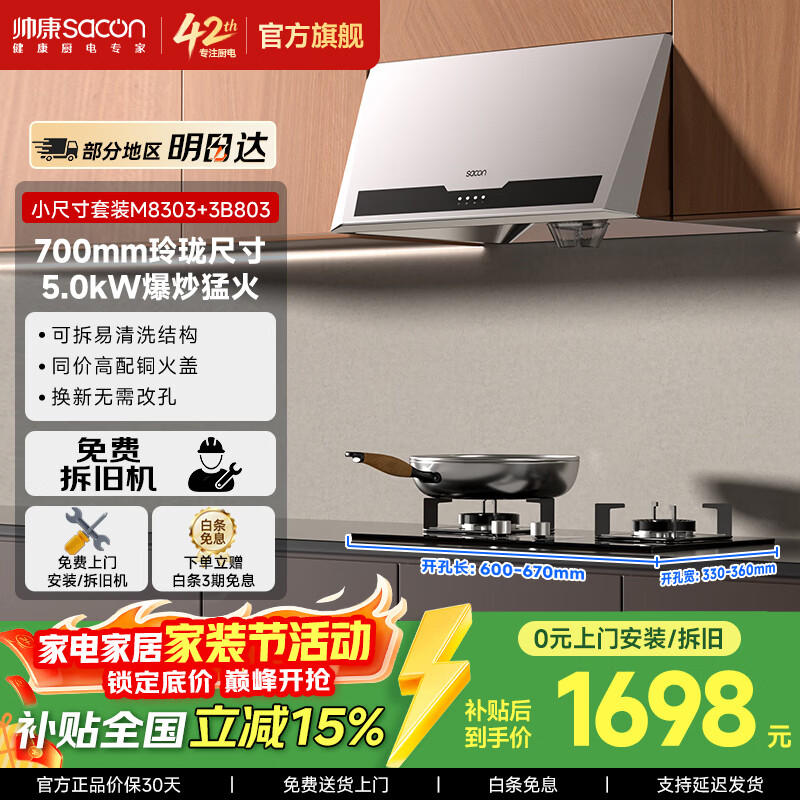 帅康(Sacon)中式抽油烟机MD01 M8303【畅销口碑款】750mm小尺寸上门安装以旧换新经典老式脱排吸油烟机 M8303套装A-性价比铜火盖(3B803)