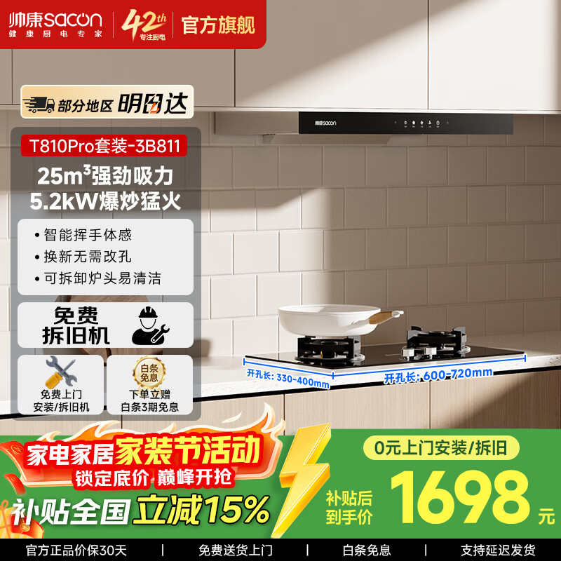 帅康(Sacon)【净界Pro】欧式顶吸式抽油烟机T810Pro T8233Pro 【特价爆款】25m³大吸力 以旧换新挥手智控 净界Pro套装-5.2kW可调底壳(3B811)