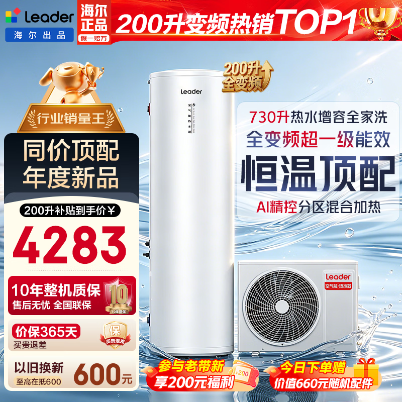 海尔(Haier)国家补贴空气能电热水器包安装 双变频一级节能200升/300升80℃家用商用统帅空气源电辅热泵热水器 MFE7【200升全变频】分区加热/恒温顶配 变频