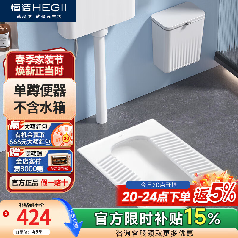 恒洁(HEGII)专利款蹲便器水箱套装超薄防溅防臭卫生间蹲便蹲坑蹲厕大便器3026 3027A单蹲便器(后进后排)
