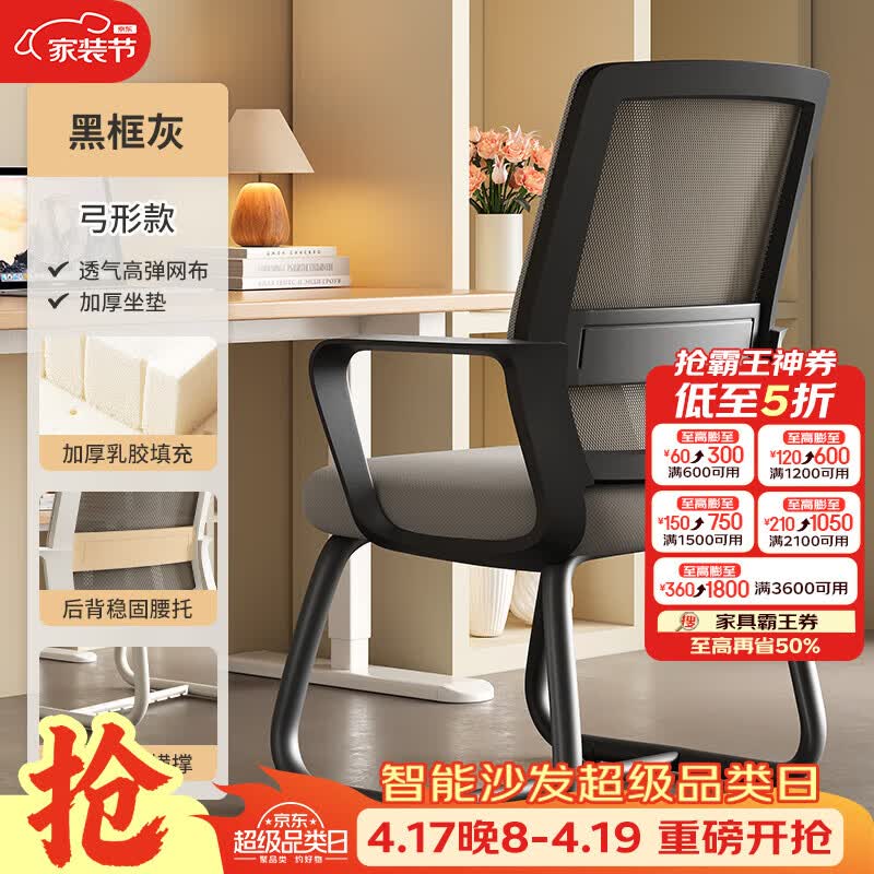 树浩电脑椅办公椅子舒适久坐靠背椅宿舍卧室学习座椅弓形电竞椅写字椅 【弓形款】乳胶款-黑框灰网