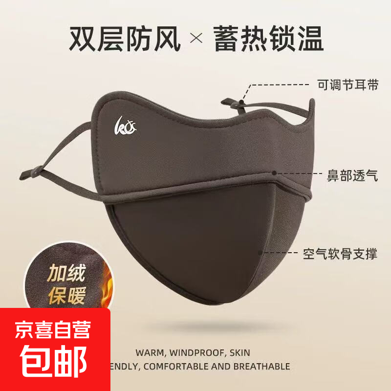 摩托车护颈口罩女男5D立体面罩加大加厚秋冬季可水洗防寒 护眼角咖色(防脱妆)