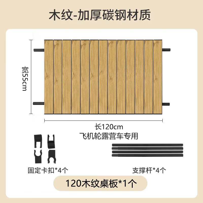 野徒者露营车户外推车野餐车儿童可躺露营装备折叠摆摊营地车小买菜车 120卡其色桌板 升级加粗全钢车架