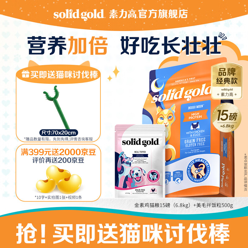 素力高(SolidGold)进口高蛋白金装金素鸡长肉营养成猫幼猫猫粮 【长肉美毛cp】金素鸡15磅+美毛拌饭粒500g