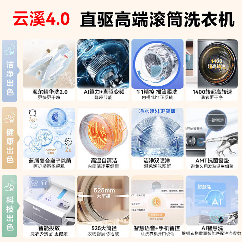 海尔(Haier)【年度机皇云溪4.0】新品滚筒洗衣机全自动11公斤/10公斤大容量直驱超薄洗烘一体 官方旗舰店 【云溪4.0】智慧语音控制 77EW 滚筒单洗 10kg