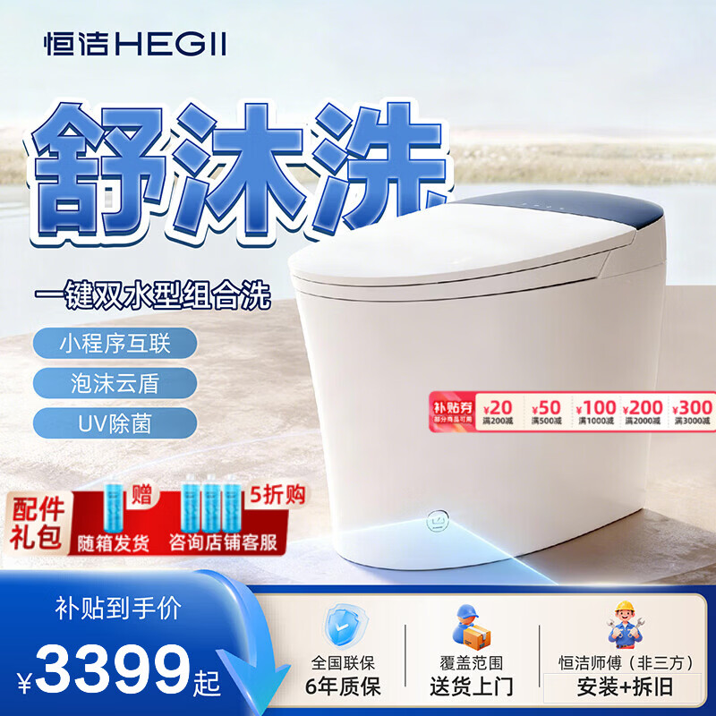 恒洁落地智能马桶一体机全自动无水压带水箱即热式坐便器翻盖翻圈系列 【泡沫盾+UV除菌+智控翻盖+隐藏脚感冲水】H360mate 305/300mm