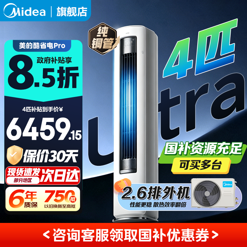 美的空调 酷省电 新一级能效变频冷暖 AI酷省电技术 客厅立式柜机 变频冷暖 以旧换新 国家补贴 酷省电Ultra88大柜 4匹 16米远距离送风