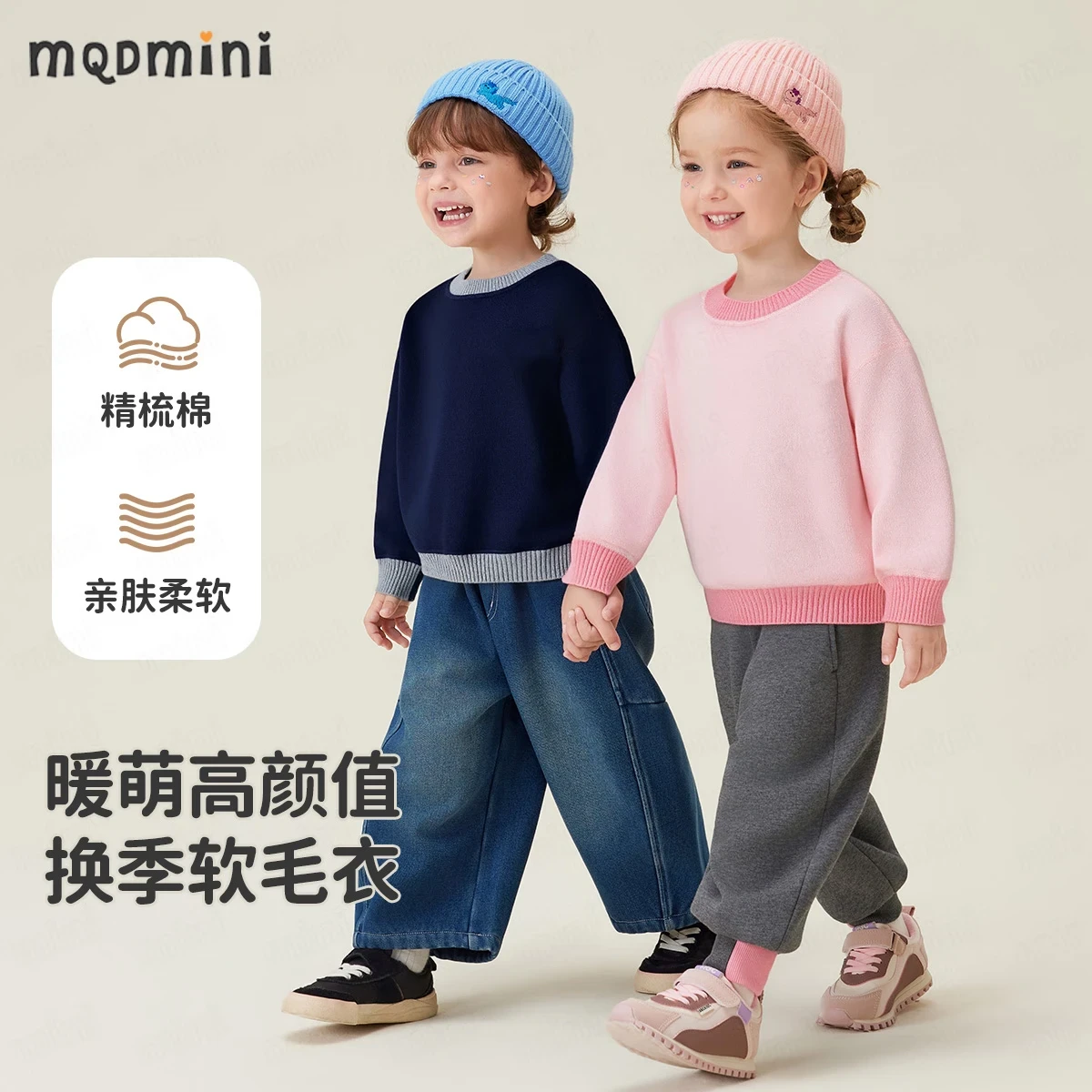 MQDMINI儿童针织衫男女童毛衣撞色新款秋冬1 撞色罗纹深蓝 130