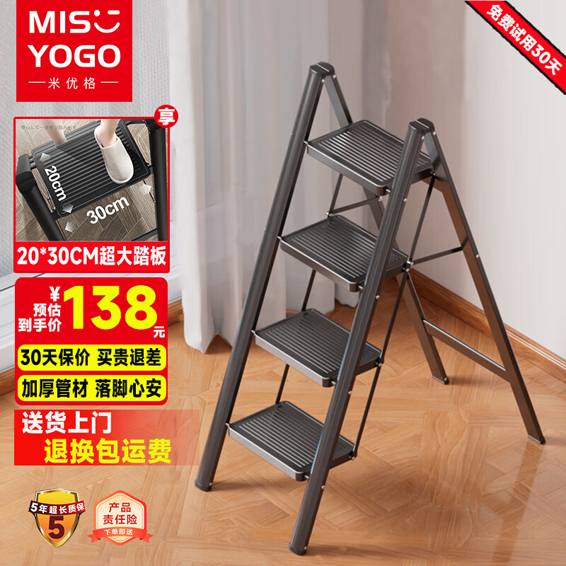 MISYOGO乔迁之喜梯子新居家用折叠多功能加厚花架置物搬家入户全红人字梯 加厚款雅典黑-四步梯