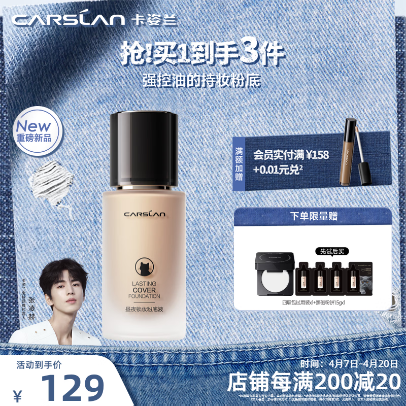 卡姿兰(Carslan)双猫粉底液遮瑕控油bb霜持久不易脱妆不卡粉奶夜混猫生日礼物女友 【3代45g】W01黄皮偏白-油皮