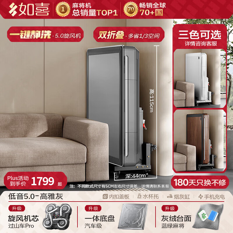如喜【防侧翻20万次不卡牌】麻将机全自动餐桌低音家两用一体折叠电动 47【低音5.0超薄旋风机】双折叠-灰绒-灰(3色可选) 请联系客服选择麻将牌大小