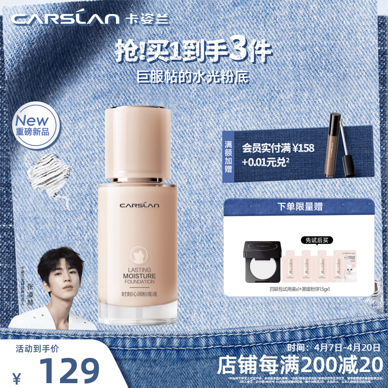 卡姿兰(Carslan)双猫粉底液遮瑕控油bb霜持久不易脱妆不卡粉奶夜混猫生日礼物女友 【3代45g】W01黄皮偏白-干皮