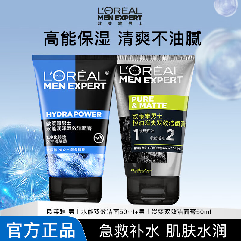 欧莱雅男士洗面奶补水保湿控油碳爽磨砂抗黑头深层净化氨基酸洁面膏乳 水能洁面膏+炭爽洁面
