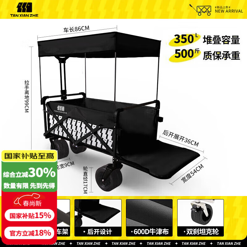 探险者露营车折叠推车户外露营儿童小推车营地车拉年货小拖车聚拢型推车 350L 印花限定-坦克轮+遮阳棚