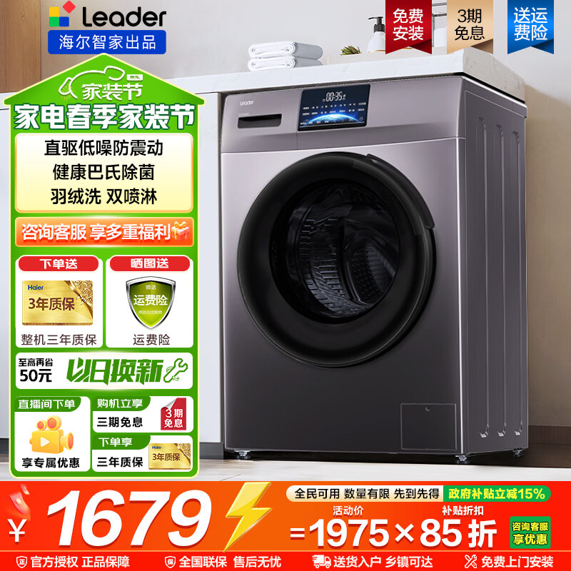 海尔(Haier)10kg全自动滚筒洗衣机大容量超薄洗衣机带烘干洗烘一体机一级能效节能除菌螨Leader 以旧换新补贴 【晶彩直驱】 滚筒单洗 +巴氏除菌+羽绒洗+双喷淋