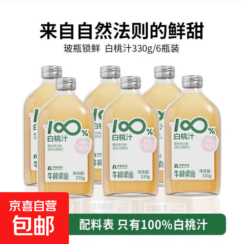牛顿农场100%白桃汁 NFC果汁 0添加 玻璃瓶装 桃汁330g*6瓶