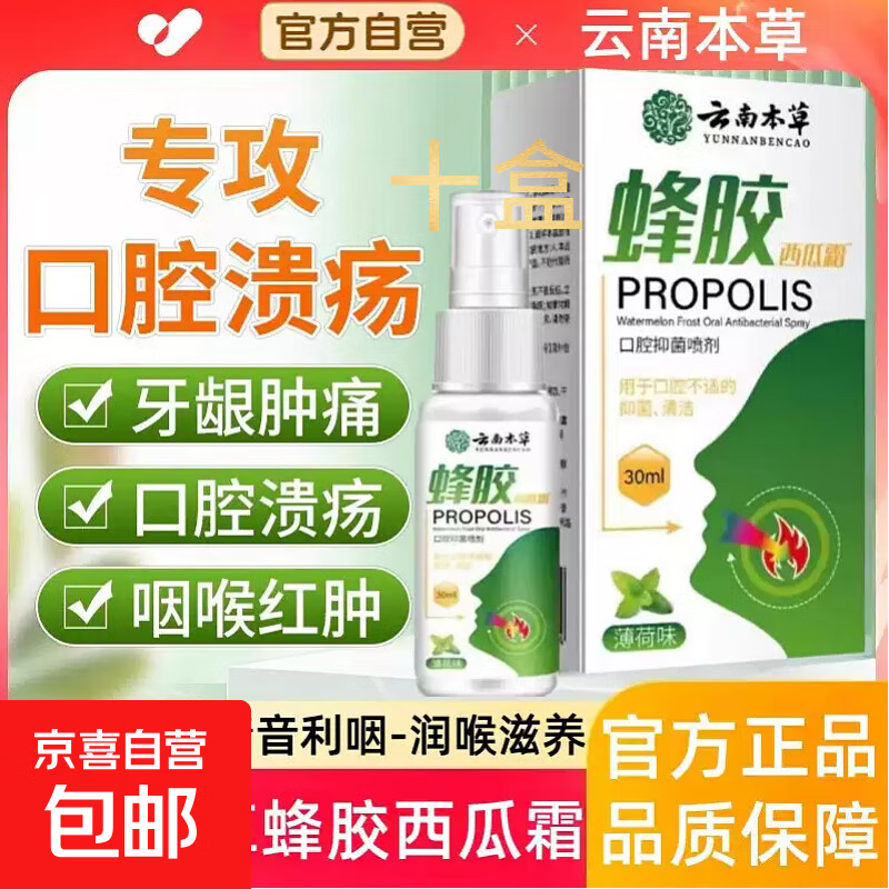 蜂胶西瓜霜口腔喷雾剂金嗓子上火咽炎牙龈肿痛消肿溃疡 十盒 严重反复者适用 价格优惠 老客首选