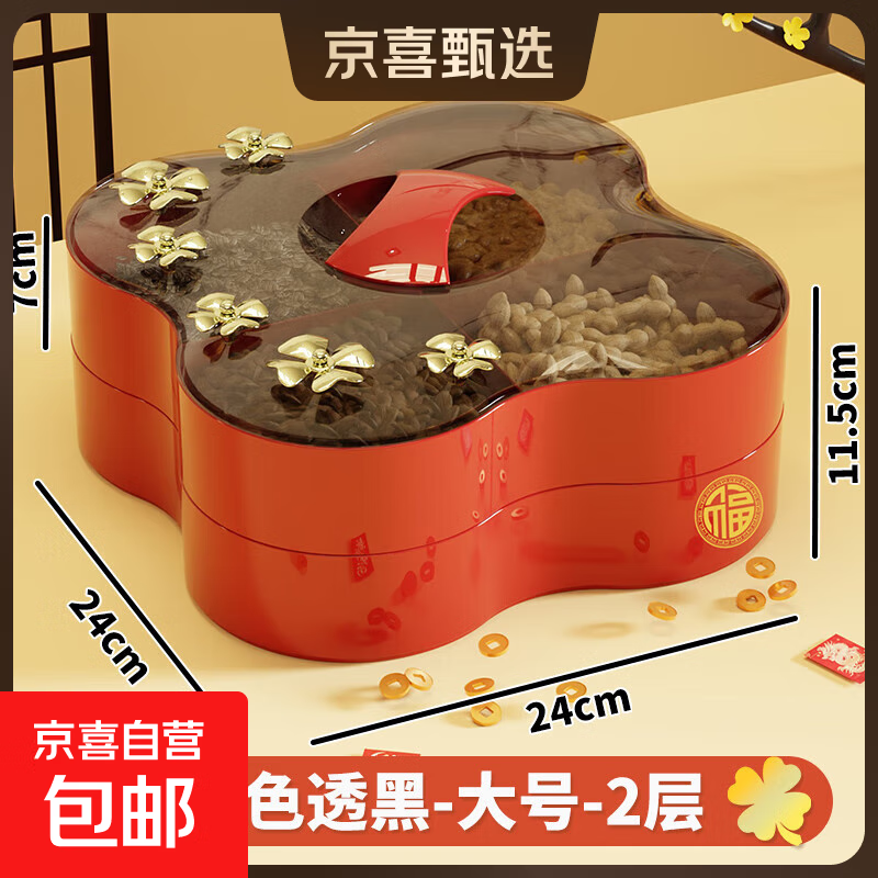 京东物流 果盘家用客厅茶几糖果盒年货新年过年干果盘水果盘 红茶透 大2层