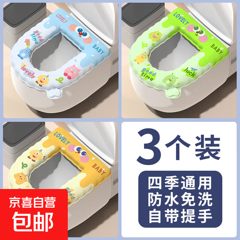 马桶垫冬季可爱卡通马桶套坐垫家用垫子EVA防水马桶圈四季 蓝+绿+黄 40*38*2cm