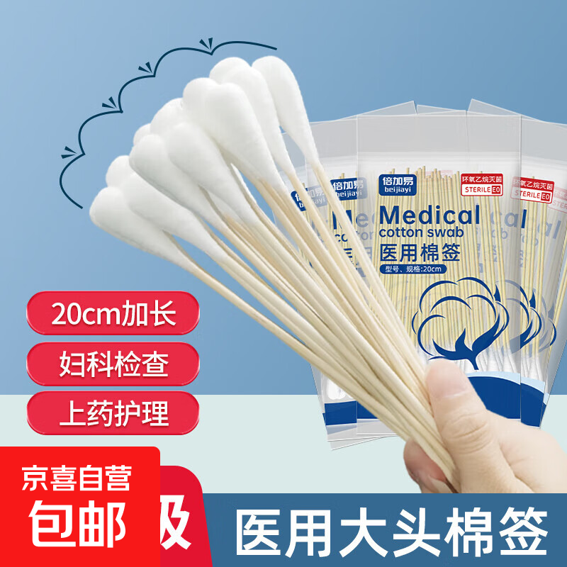 医用无菌大头棉签一次性医疗妇科伤口消毒清洁大号20cm长棉签棒 无菌20cm大头棉签*10袋【共200支】