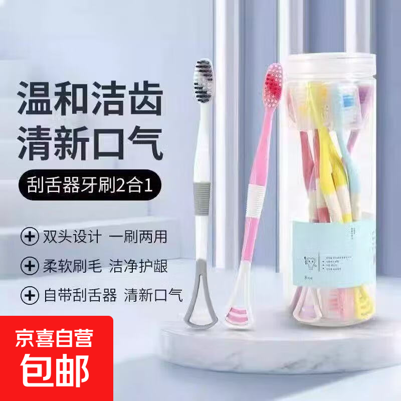 刮舌苔牙刷8支桶装独立保护套多功能硅胶竹炭软毛成人牙刷 刮舌器牙刷 8支 【20桶】