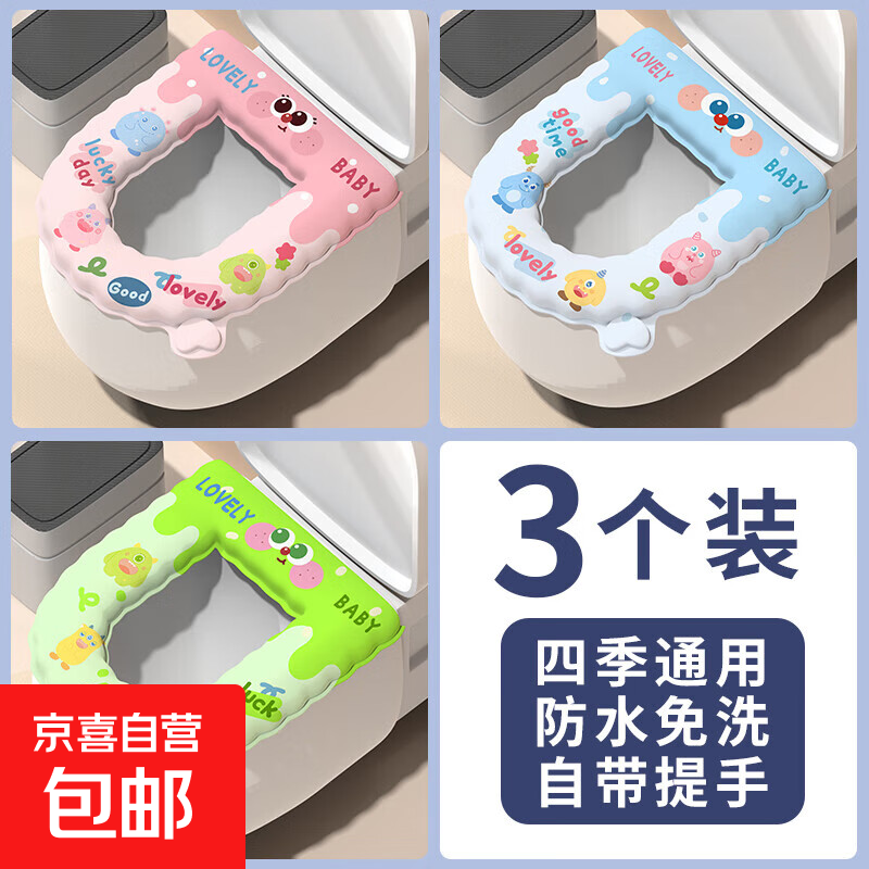 马桶垫冬季可爱卡通马桶套坐垫家用垫子EVA防水马桶圈四季 粉+蓝+绿 40*38*2cm