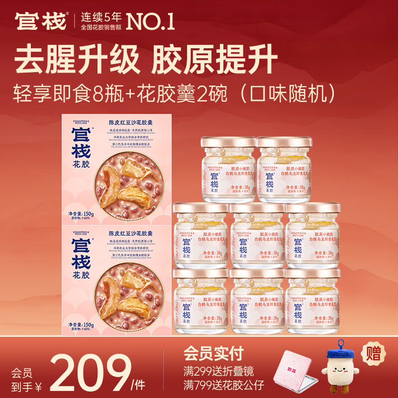 官栈 即食花胶轻享装 花胶鱼胶 天然胶原蛋白 滋补营养品 轻享装38g*8+花胶羹150g*2
