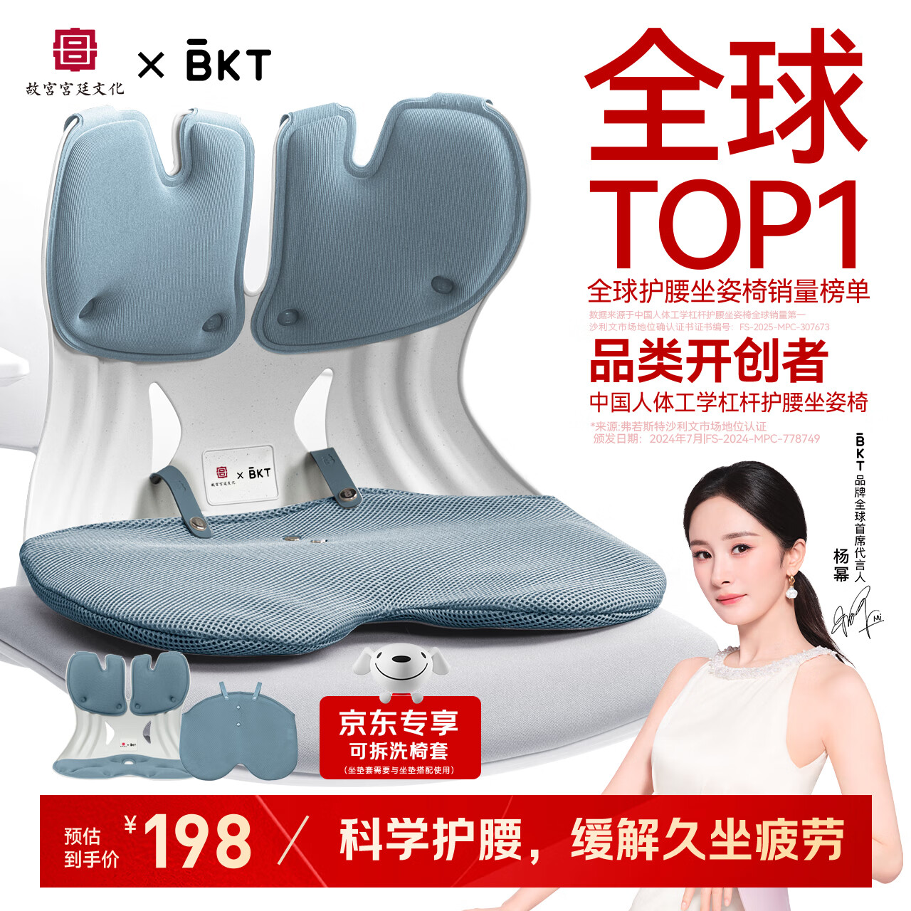 BKT护腰坐垫护腰久坐神器人体工学腰靠垫办公室护腰坐姿椅节日礼物