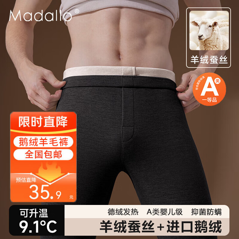 莫代尔A类羊绒保暖裤男发热内穿秋裤秋冬鹅绒薄绒衬裤加厚线裤打底毛裤