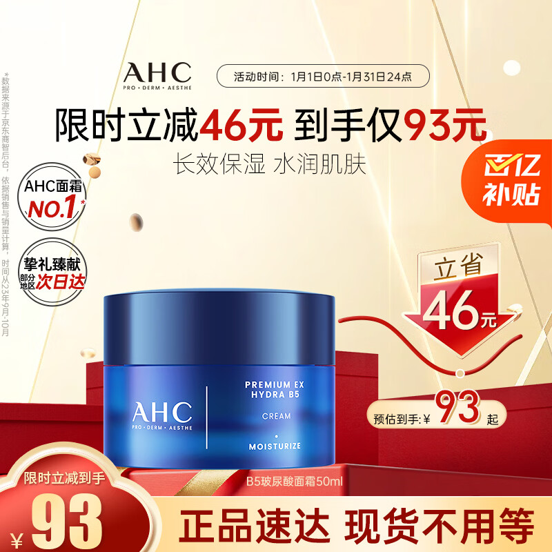 AHC B5玻尿酸面霜50ml护肤品补水保湿滋润乳液新年礼物送女友