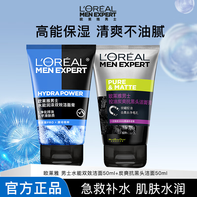 欧莱雅男士洗面奶补水保湿控油碳爽磨砂抗黑头深层净化氨基酸洁面膏乳 水能洁面膏+抗黑头洁面
