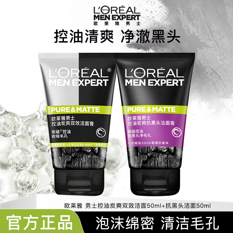 欧莱雅男士洗面奶补水保湿控油碳爽磨砂抗黑头深层净化氨基酸洁面膏乳 炭爽洁面+抗黑头洁面