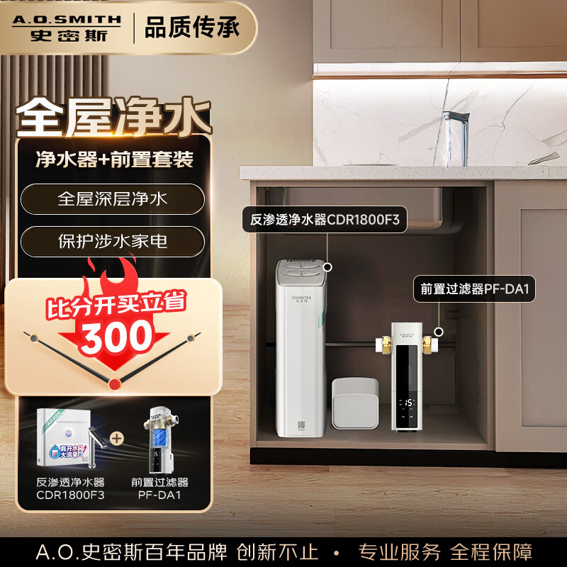 史密斯(A.O.SMITH)佳尼特净水器家用加热直饮一体机厨下加热净水器CDR1800F3椰皇冷热姐妹款 【前置套装】净水器+前置PF-DA1 升级智能触控龙头