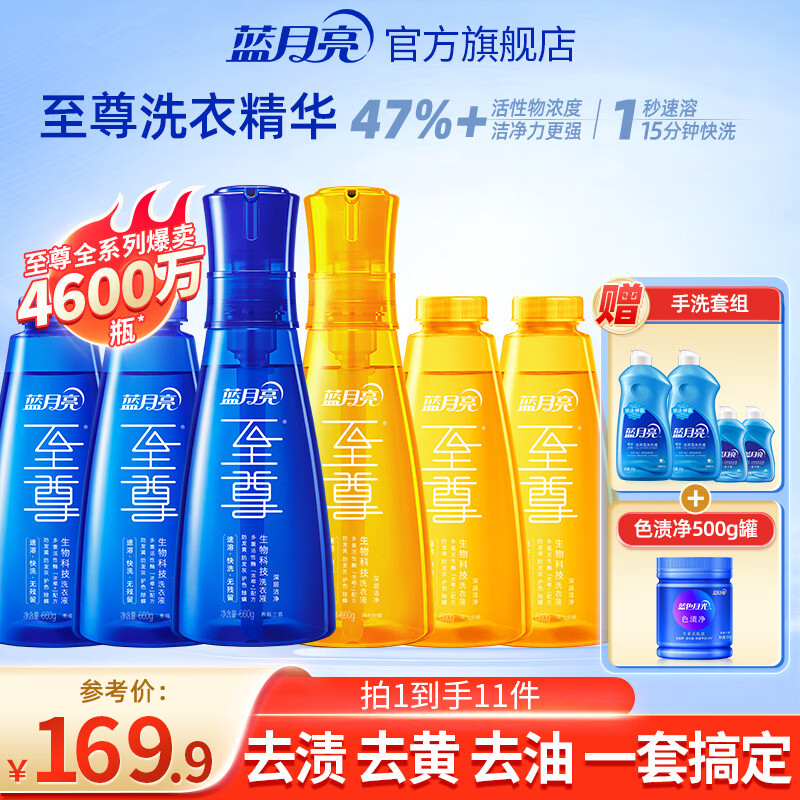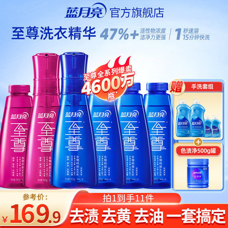 蓝月亮至尊洗衣精华浓缩洗衣液 47%+活性物浓度 秒溶快洗 【11件套】素雅兰香+粉香依兰 (适合快洗)