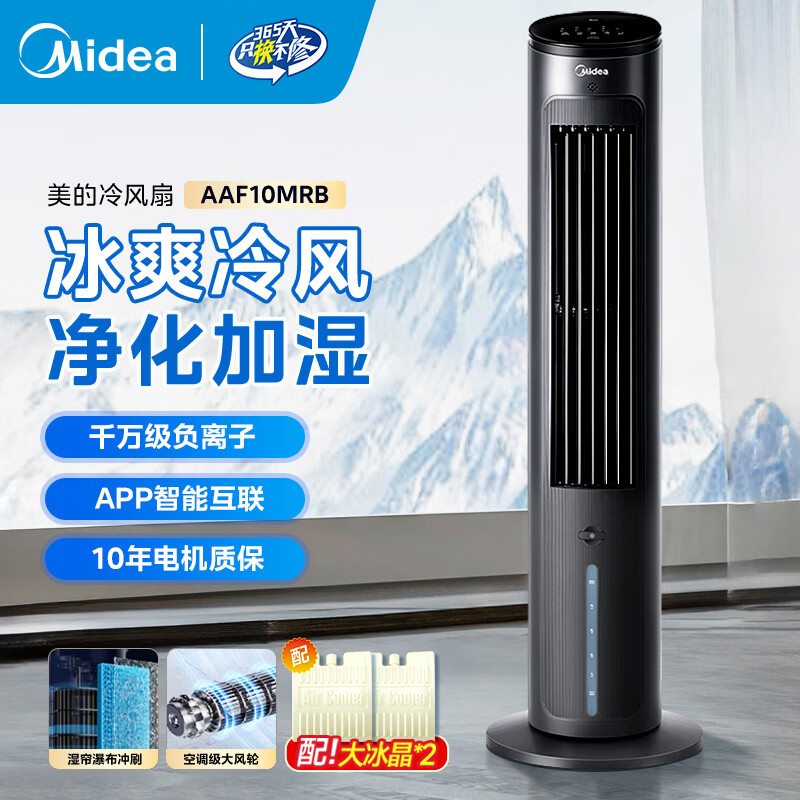 美的(Midea)【强劲冷风】空调扇制冷风扇家用冷风机强力降温卧室客厅立式凉风机无雾加湿降尘塔扇 APP智控-负离子-黑色