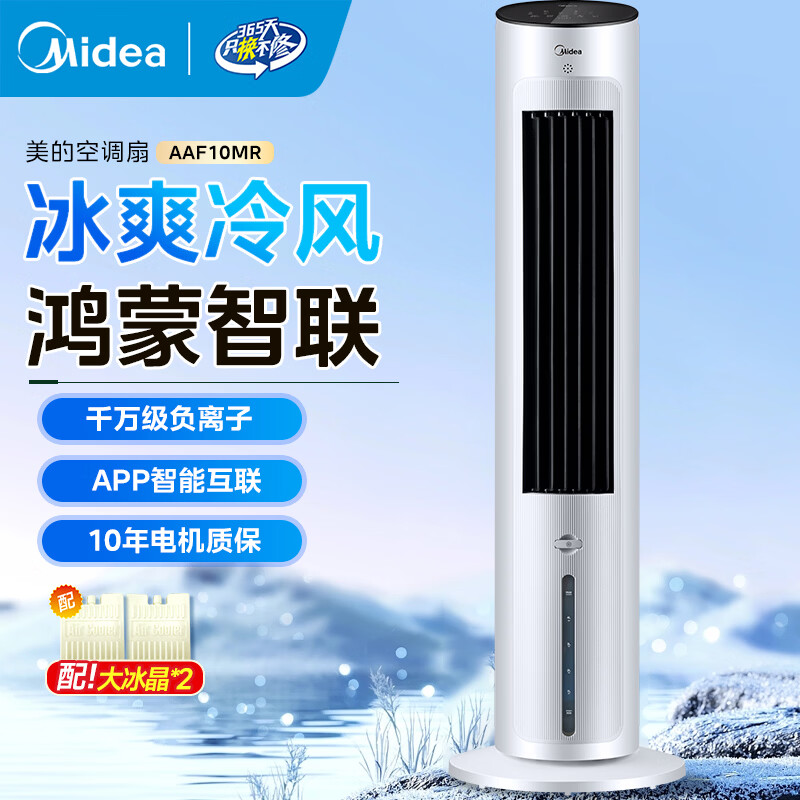 美的(Midea)【强劲冷风】空调扇制冷风扇家用冷风机强力降温卧室客厅立式凉风机无雾加湿降尘塔扇 APP智控-负离子-白色