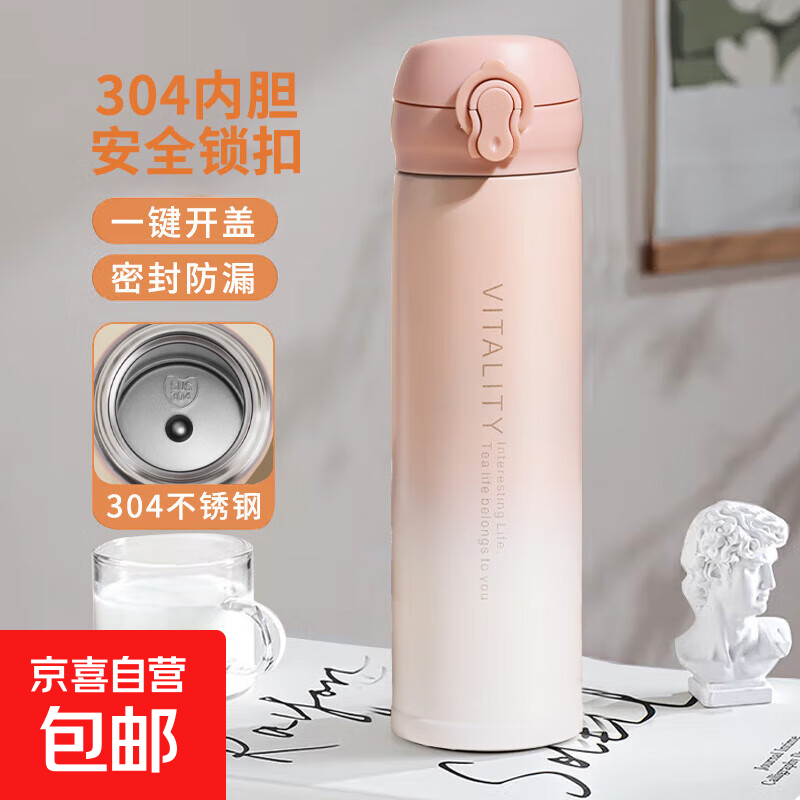 【京东物流】渐变304不锈钢学生男女保温杯简约弹跳盖便携保温 粉白渐变-400ML