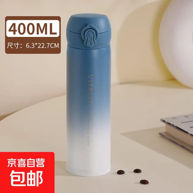 【京东物流】渐变304不锈钢学生男女保温杯简约弹跳盖便携保温 蓝白渐变-400ML