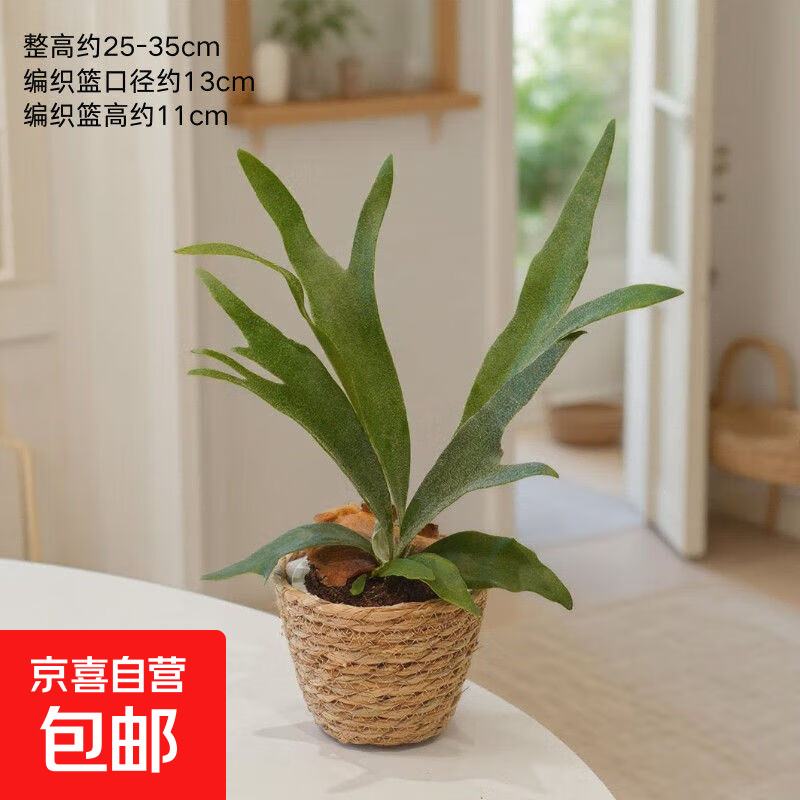 鹿角蕨植物网红客厅挂壁净化空气懒人好养趣味观叶绿植盆栽室内 鹿角蕨+草编篮子 无规格