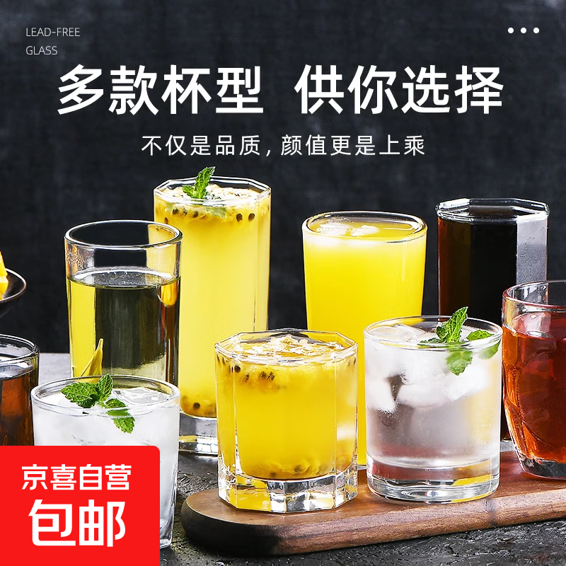 玻璃杯水杯家用杯子客厅喝水学生杯耐热待客泡茶茶杯新款一套 高款八角杯【260ml】 6只