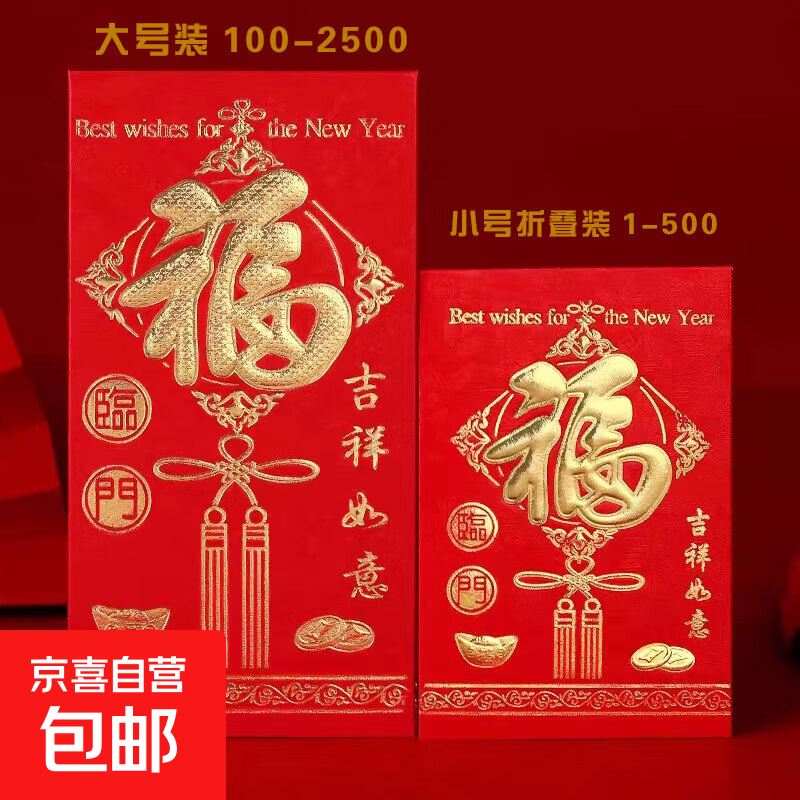 新年红包蛇年春节压岁包开工利是压岁包千元封大吉大利高档通用袋 福 24个(小号)百元折叠放