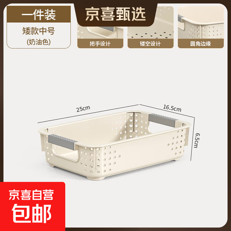 杂物收纳筐塑料桌面收纳盒厨房橱柜零食玩具整理筐置物塑料收纳篮 奶油色矮款中号 25 * 16.5 * 6.5cm