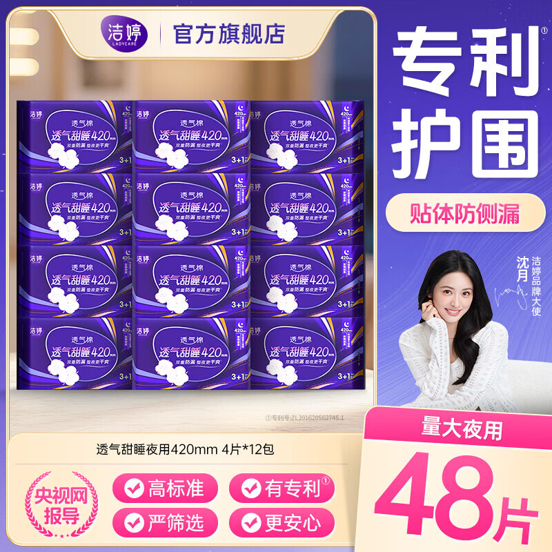 洁婷绵柔卫生巾透气双U日夜用姨妈巾组合套装 加长夜用420mm48片